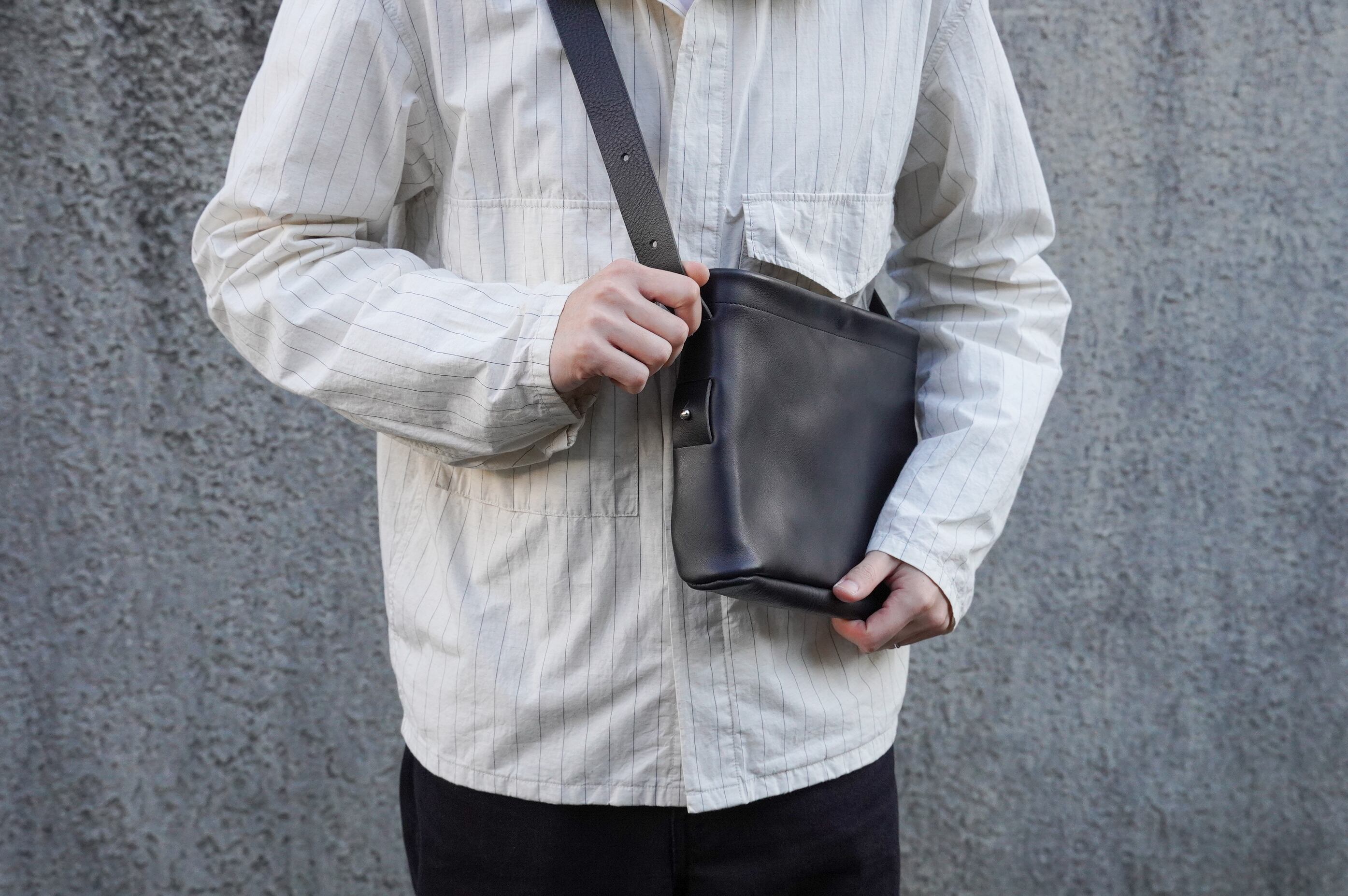 両側のギボシでショルダーの長さを調整することができます。斜めにかけたり肩掛けのワンショルダーとしても。