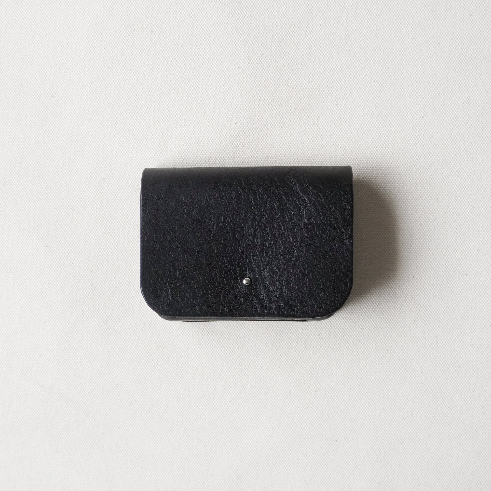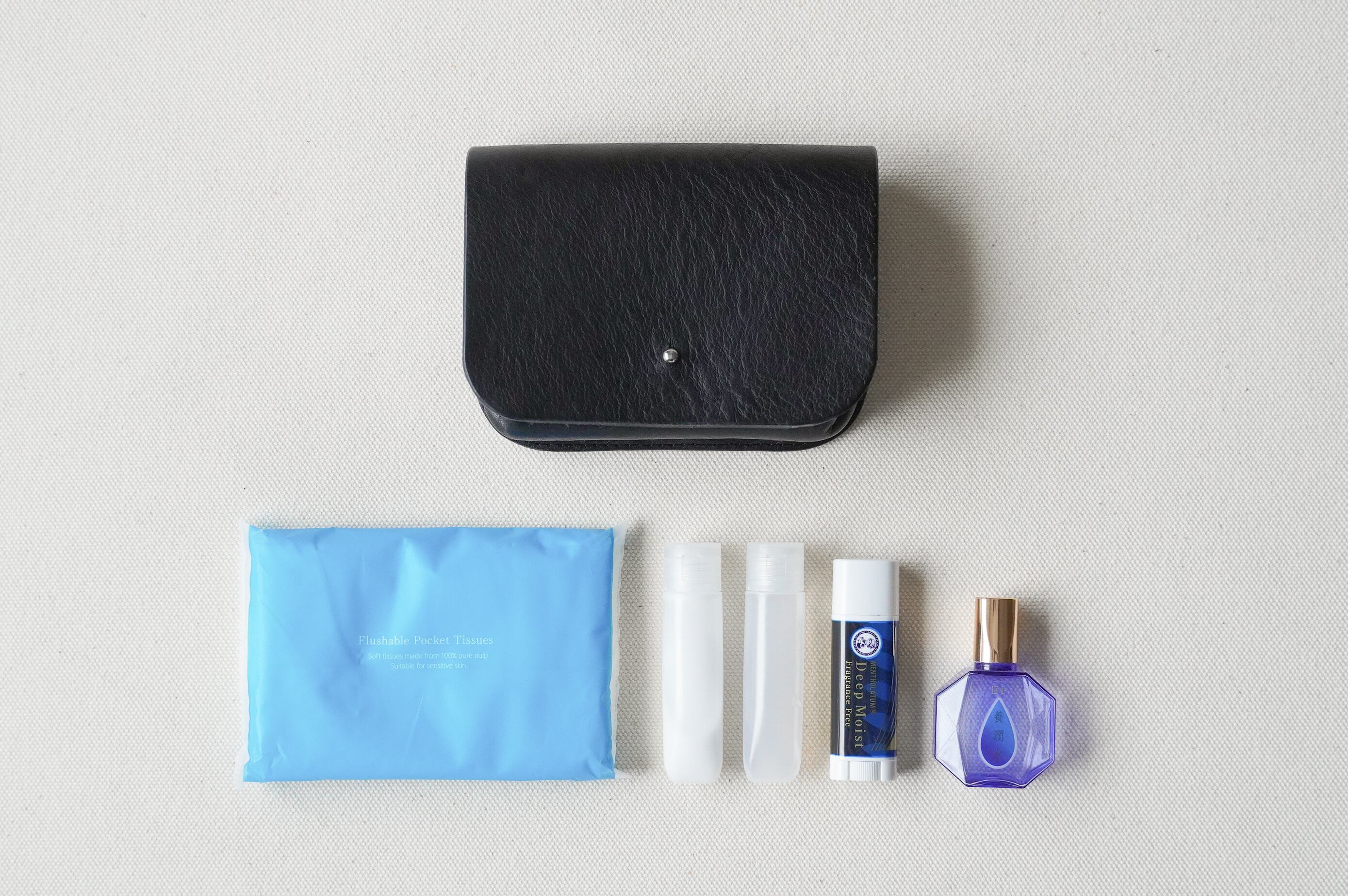 厚みのある革で後ろからぐるっと包み込むようなポーチです。